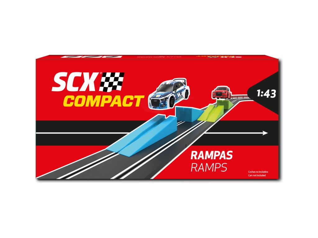 SCX Compact Rampa pro autodráhy SCX v měřítku 1:43. Zažijte ještě více zábavy se skokánkem na trati, který je tvoře odrazovou a doskokovou rampou. Balení obsahuje dvě sady.