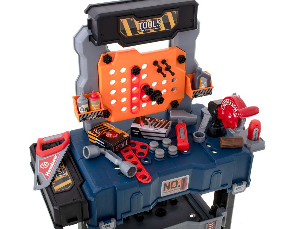 Sada obsahuje široký výběr nářadí, které je nezbytným vybavením každého malého odborníka. Příslušenství zahrnuje šrouby s krytkami, šroubovák, kleště a kladivo. Všechny položky jsou baleny v praktickém pouzdře, které se během několika sekund promění v pracovní stůl.
