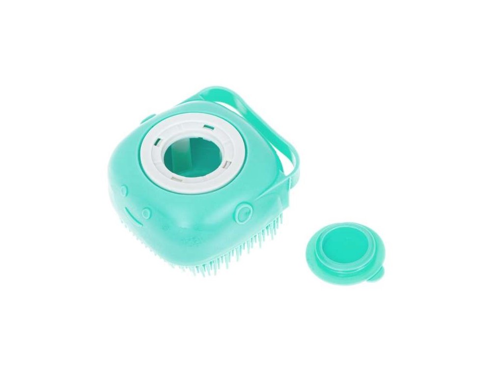 Silikonový kartáč s dávkovačem šamponu na mytí pro psy a kočky - modrý