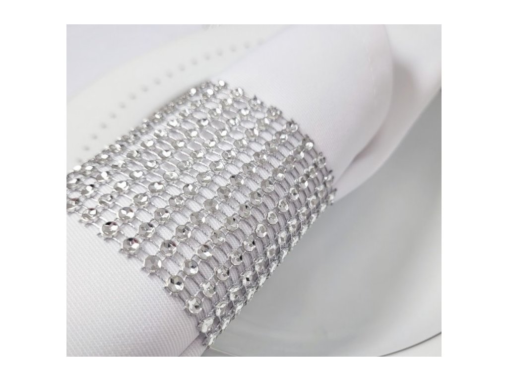 Spona na ubrousky má robustní suchý zip, který se snadno používá. Spona je vyrobena z plastových fazet, napodobují vzhled drahých kamínků a brilantně svítí na světle, lze je použít opakovaně.