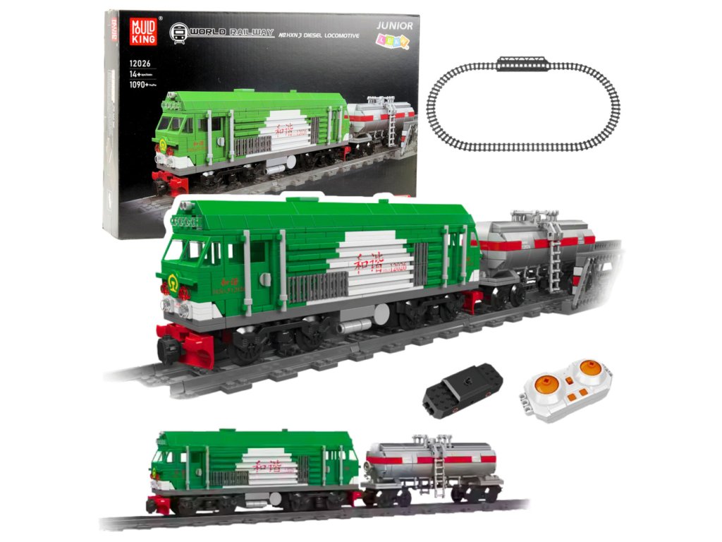 Stavebnice RC vlaku s 1090 dílky je ideální pro železniční nadšence, stavitelské nadšence a dálkově ovládané modely aut. Umožňuje vám postavit realistickou zeleno-stříbrnou lokomotivu s cisternovým vagónem, která jezdí po kompletní sadě kolejí a vytváří tak uzavřený systém. Díky dálkovému ovládání vlak nejenže vypadá působivě, ale také nabízí dynamickou hru.