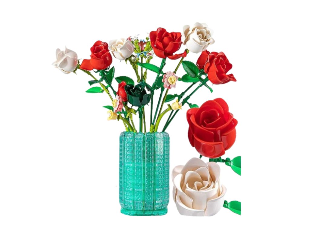 Stavebnice Kytice růží ve váze - bílá a červená, 1022ks
