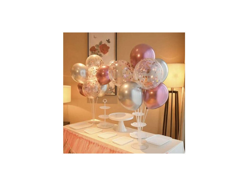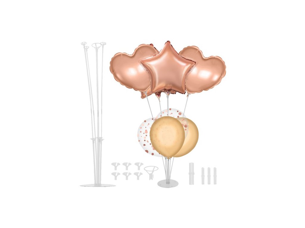 Vykouzlíte skvělý efekt, ať už stojan s balónky umístíte na stůl či kamkoliv do místnosti. Do stojanu lze zapíchnout až 7 balónků na tyčce. Balónek k tyčce připevníte nástavcem. Balónky nejsou součástí balení.