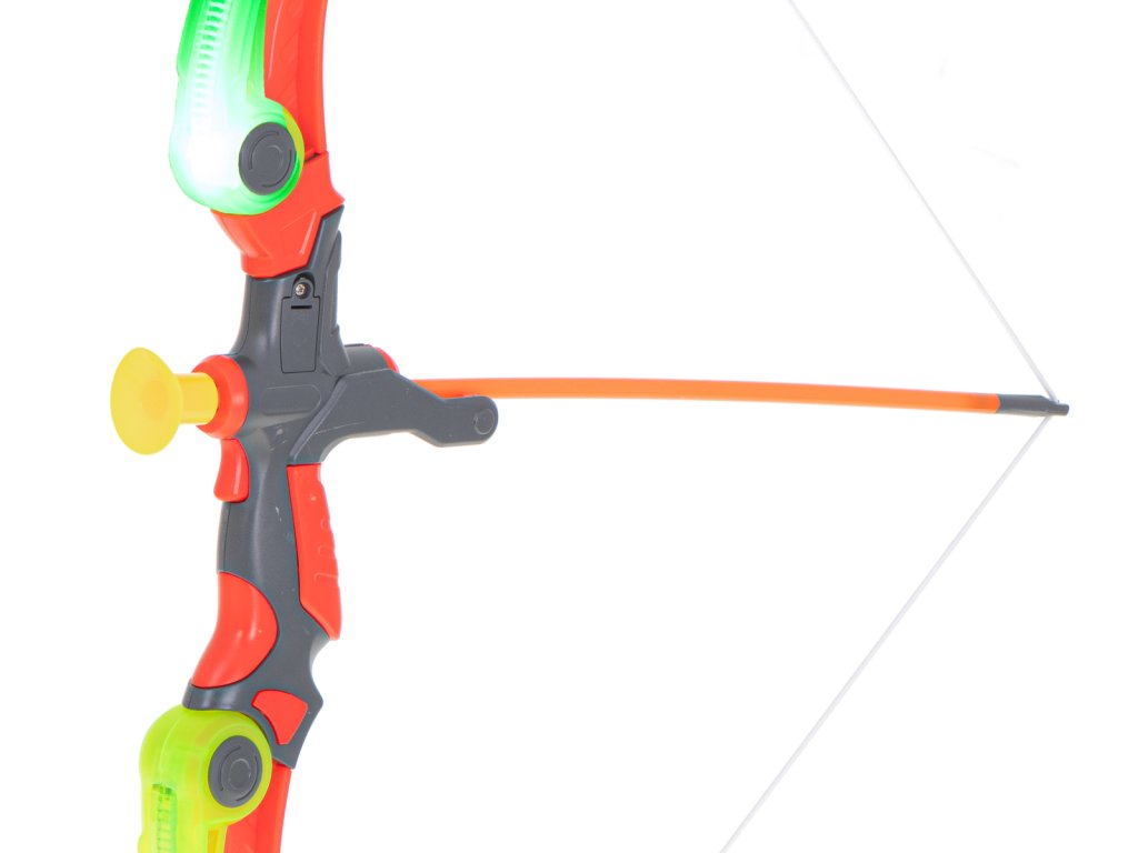 Hračka s lukem je ideální zábavou pro děti, které sní o roli lučištníka. Luk je napnutý na gumu a každý šíp je zakončen gumovou špičkou.