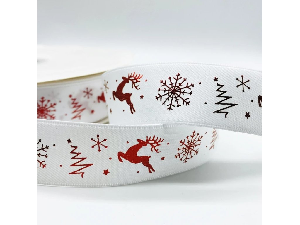 Stuha s potiskem (bílá se červeným vánočním motivem 4,5m)