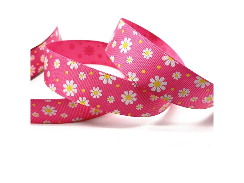 Stuha s potiskem (růžová s kytkami) 4,5m