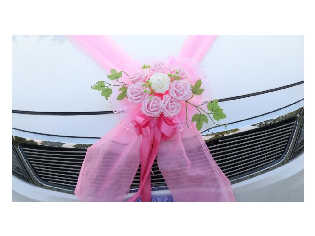 Dodejte svému svatebnímu dni nádech elegance a romantiky s touto nádhernou svatební šerpou na automobil. Dekorace je složena z jemných růží, lístků a decentních korálků, které společně vytvářejí harmonický a luxusní vzhled.