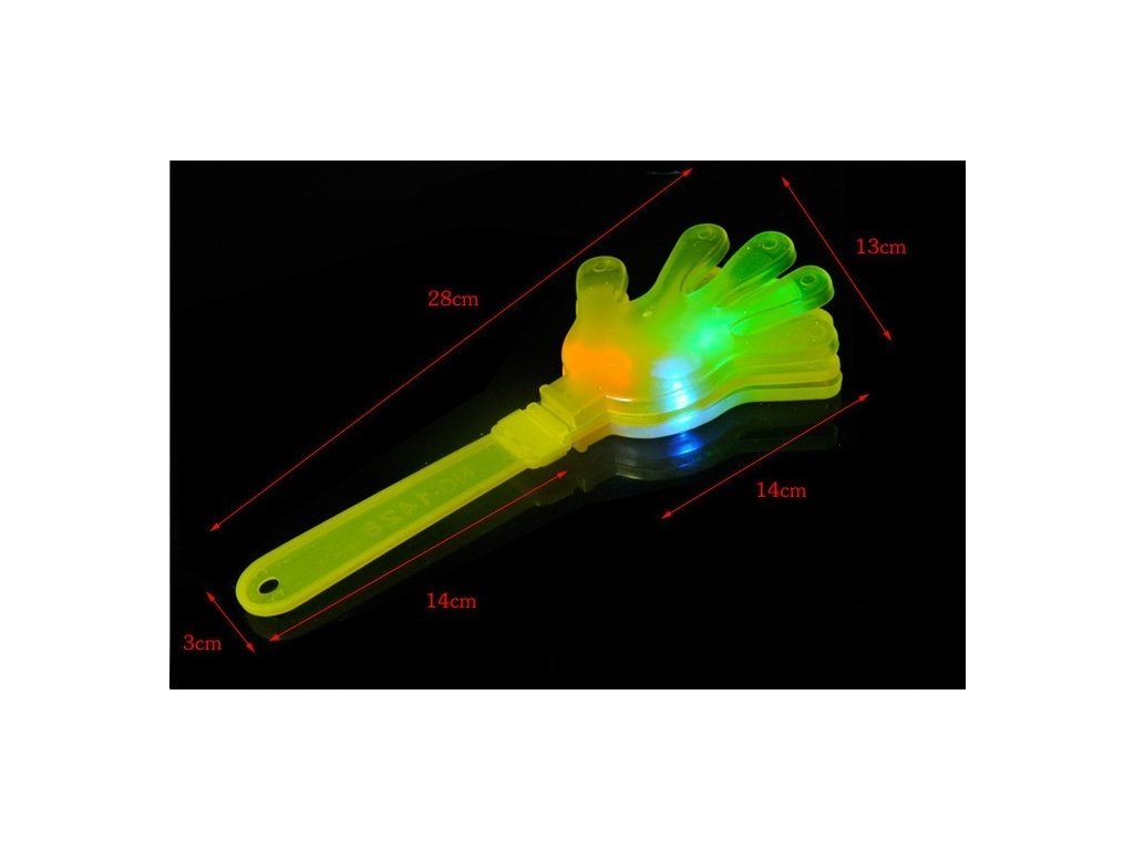 Tleskající ruka s LED světlem. Ideální pro tematické večírky a hry. Vzhledem k odlišnému zobrazení barev na každém typu monitoru může dojít k nepatrné změně odstínu barvy produktu.
