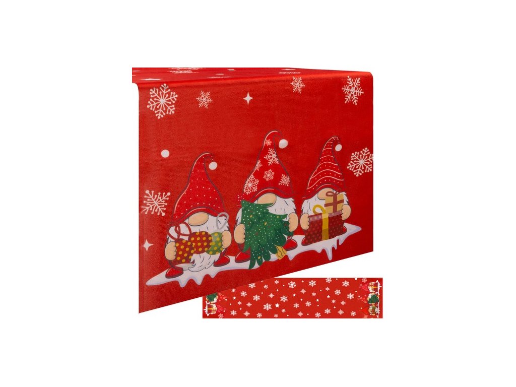VÁNOČNÍ BĚHOUN NA STŮL, ČERVENÝ S TRPASLÍKY, 180 x 40 cm
