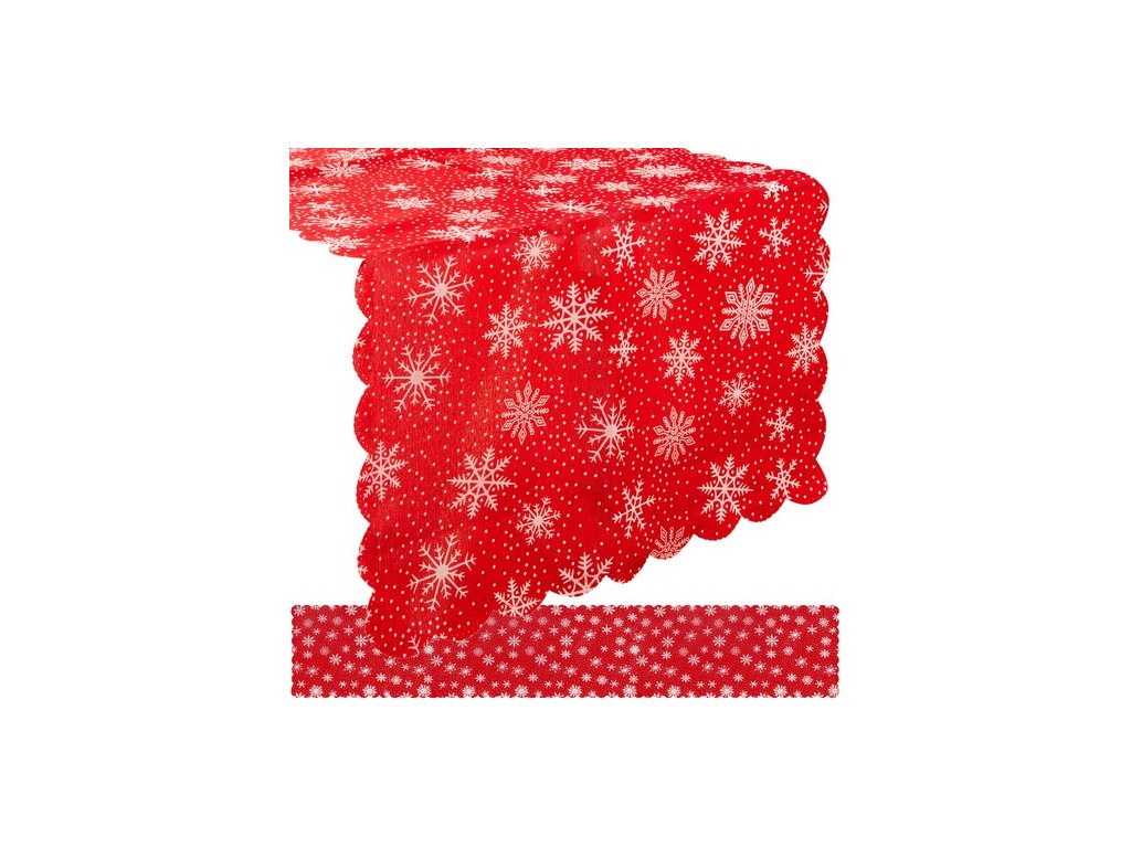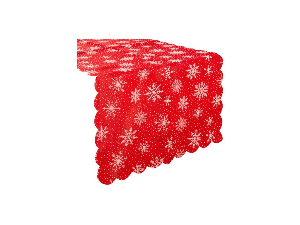 DLOUHÝ VÁNOČNÍ BĚHOUN, ČERVENÝ S BÍLÝMI VLOČKAMI, 220 x 35 cm