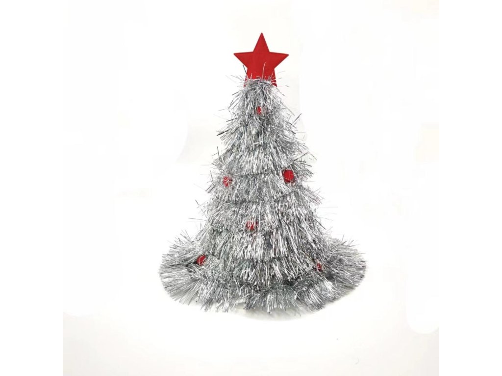 Vánoční klobouk - stříbrný stromeček s červenou hvězdou