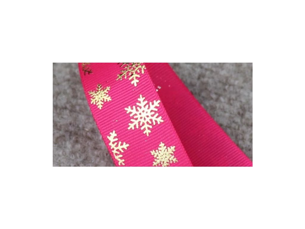 Vánoční stuha tmavě růžová s vločkami