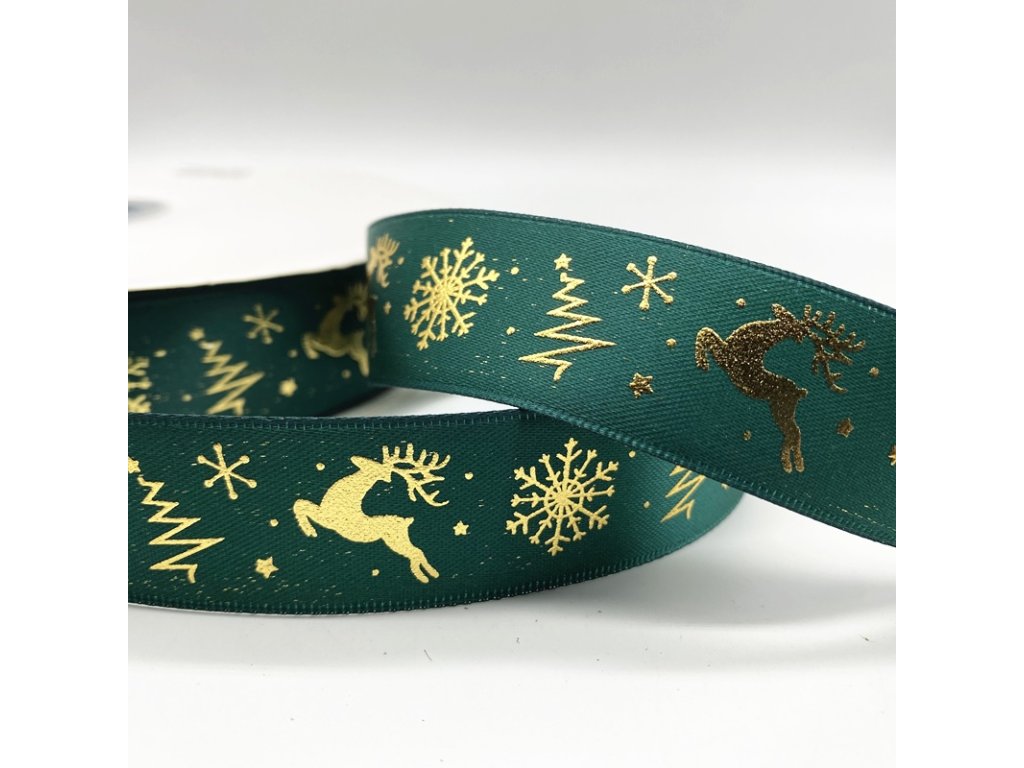 Vánoční stuha zelená se zeleným potiskem (sob) 4,5m