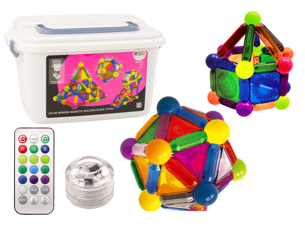 Velká magnetická stavebnice se světlem – 154 dílků v boxu