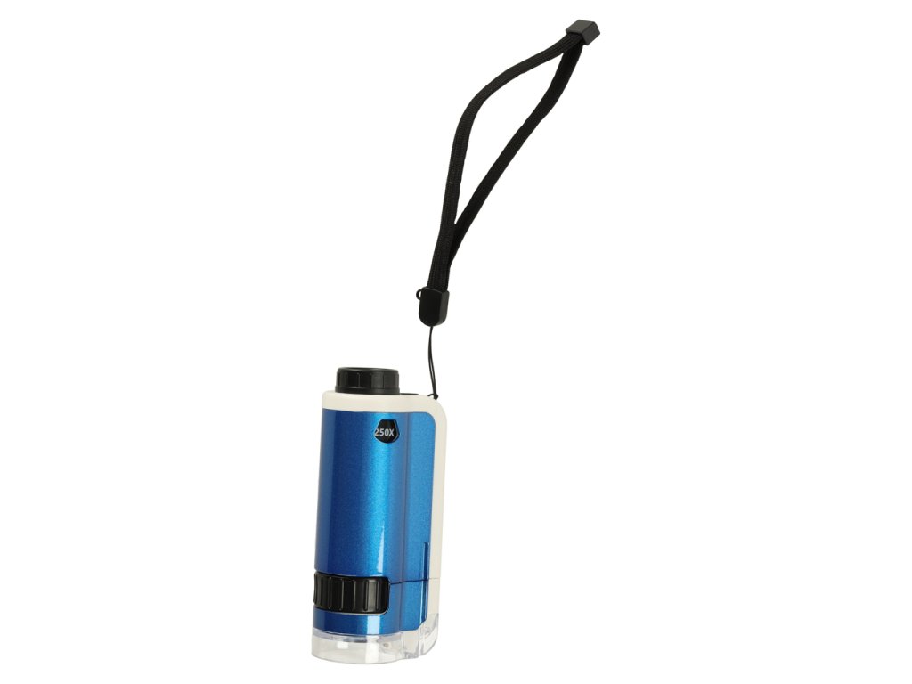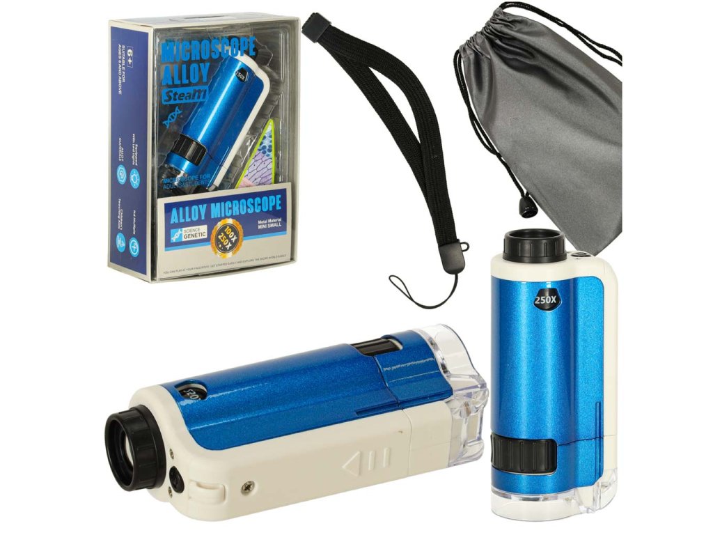 Kapesní mikroskop je vzdělávací hračka, která umožňuje dětem prozkoumávat mikroskopický svět pod zvětšením. Zařízení nabízí dvě úrovně zvětšení: 100x a 250x, takže si děti mohou přizpůsobit zoom typu vzorku, který pozorují. Vestavěná LED dioda poskytuje světlo pro bližší zkoumání detailů. Sada obsahuje praktické přepravní pouzdro a poutko na krk. Zařízení podporuje rozvoj kreativity a probouzí zvědavost k objevování okolního světa. Mikroskop je napájen třemi bateriemi AAA (nejsou součástí balení).