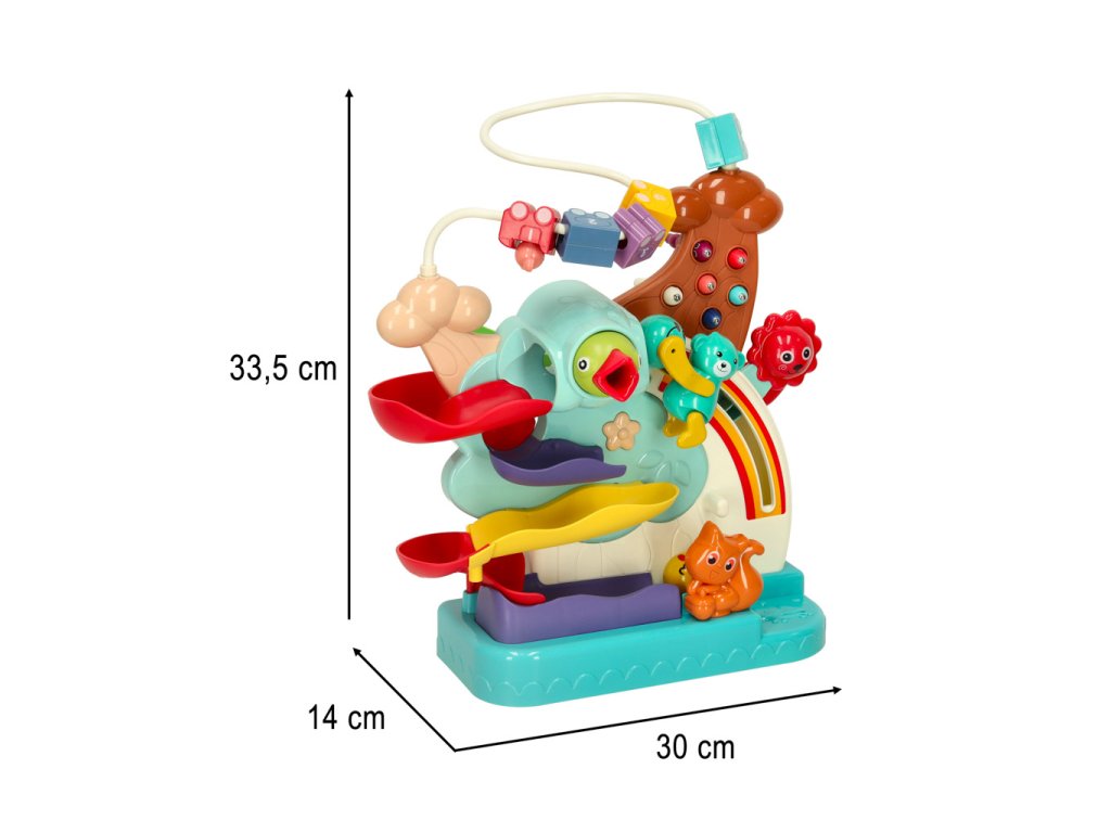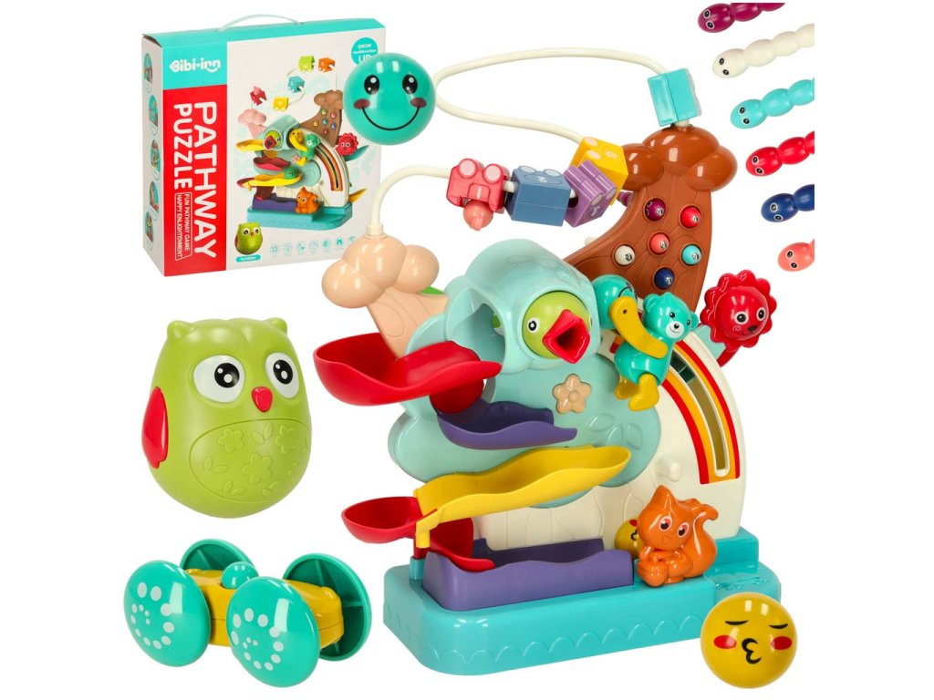 Barevná kuličková dráha je interaktivní hračka pro děti od 3 let, která rozvíjí drobnou motoriku a koordinaci ruka-oko. Hračka se skládá ze dvou kuličkových drah, po kterých se kutálí barevné kuličky nebo autíčko. Další atrakcí je hra „nakrm ptáčka“ a vláček s barevnými vagóny, které poskytují ještě více herních příležitostí. Hračka pomáhá dětem pochopit vztahy příčiny a následku a rozvíjí jejich kognitivní dovednosti pozorováním pohybu kuliček.