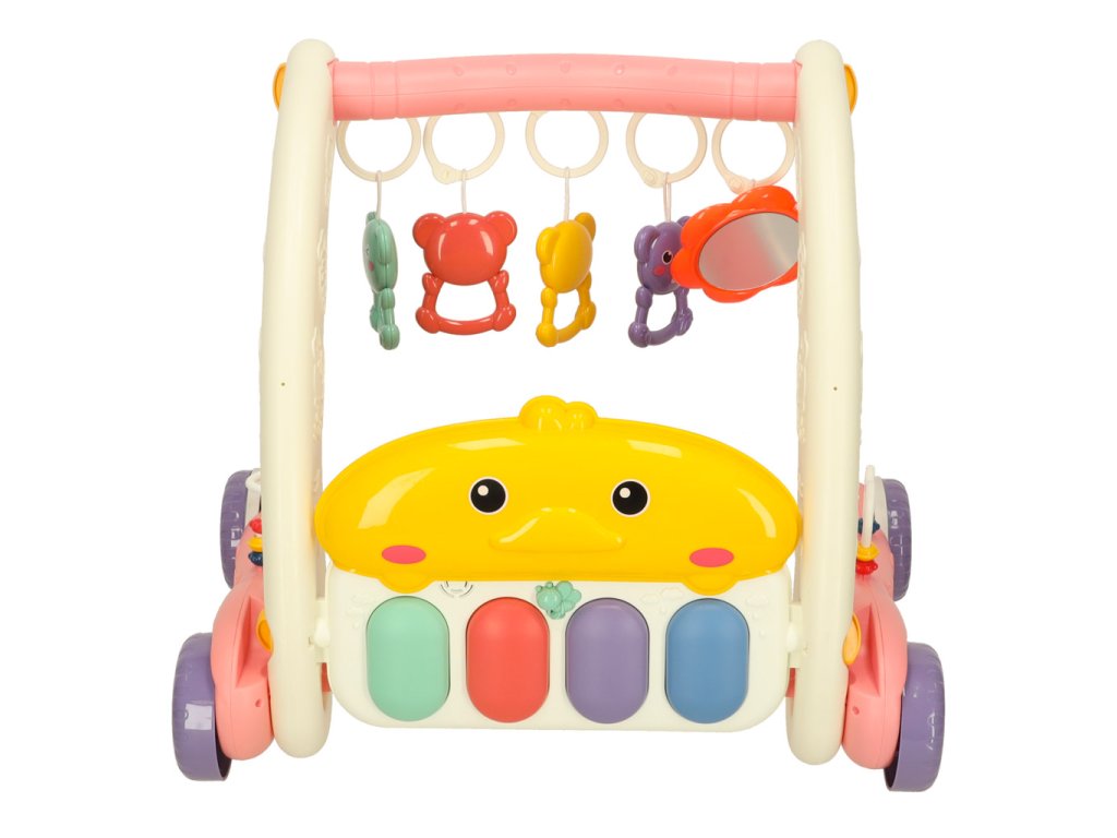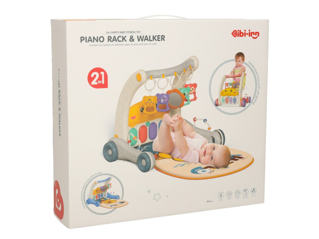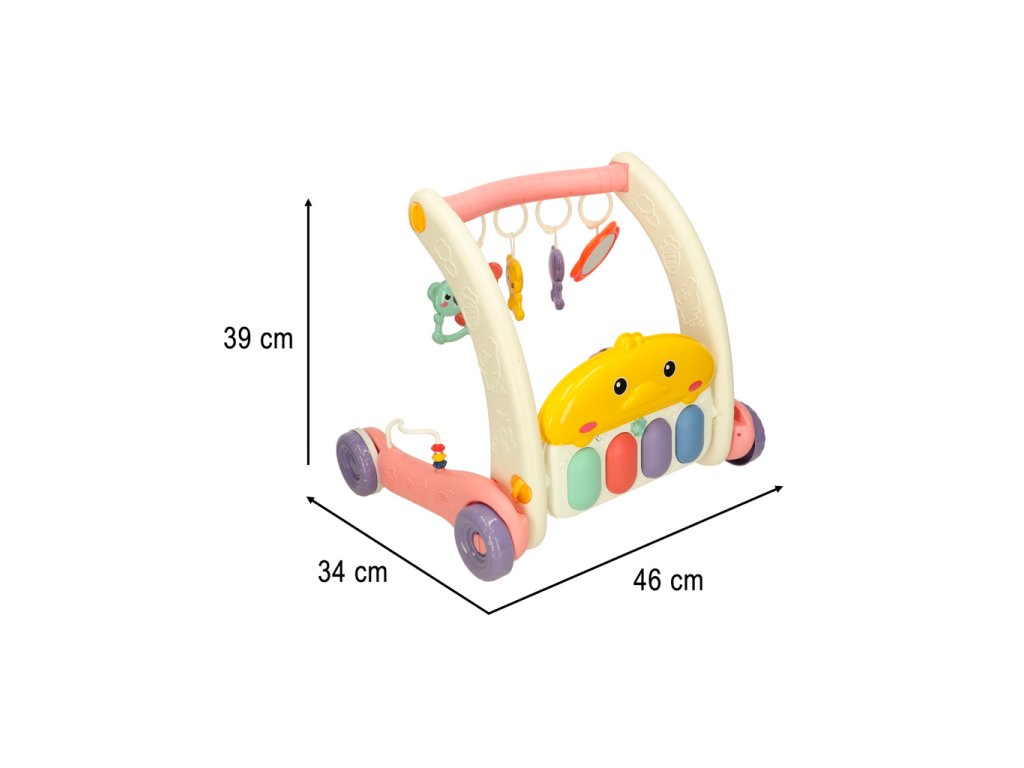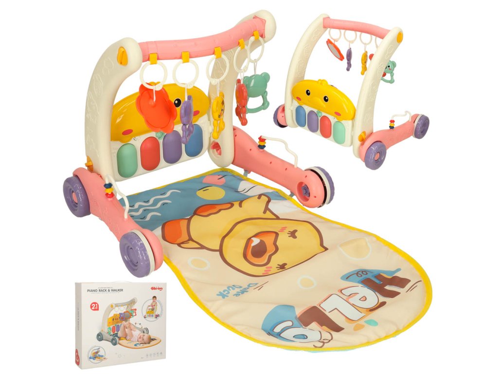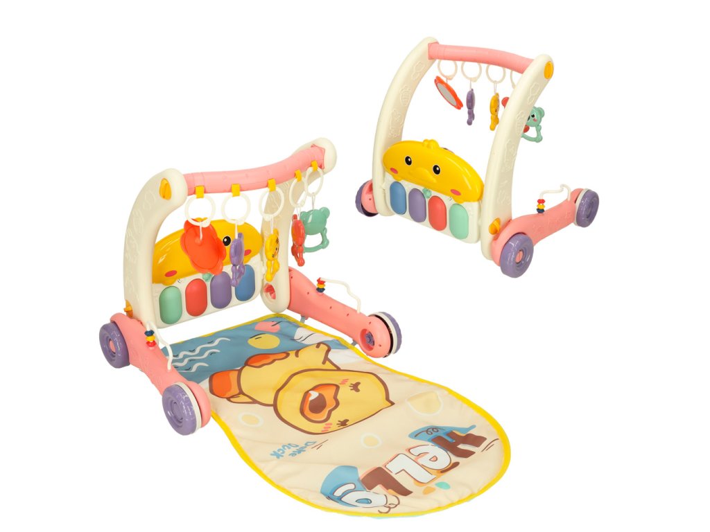 Sada 2 v 1 – chodítko a vzdělávací podložka je hračkou pro děti od prvních dnů života, která podporuje jejich motorický a senzorický vývoj. Podložka s barevným potiskem a pěti přívěsky poskytuje batolatům pohodlné místo pro hraní, zatímco interaktivní klavír se dvěma režimy a ovládáním hlasitosti stimuluje senzorický vývoj. Když dítě začne dělat první krůčky, hračku lze použít jako chodítko, které usnadňuje učení chůze a pomáhá udržovat rovnováhu díky robustním kolečkům. Je to praktické řešení, které roste s dítětem.
