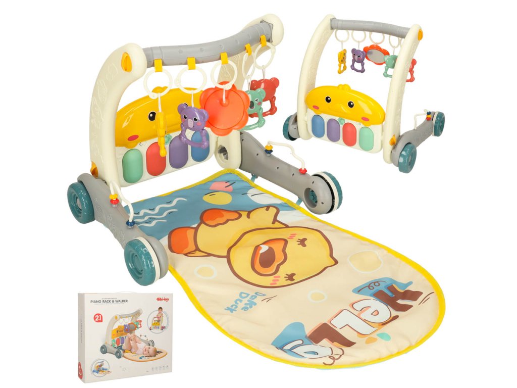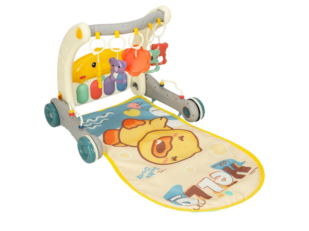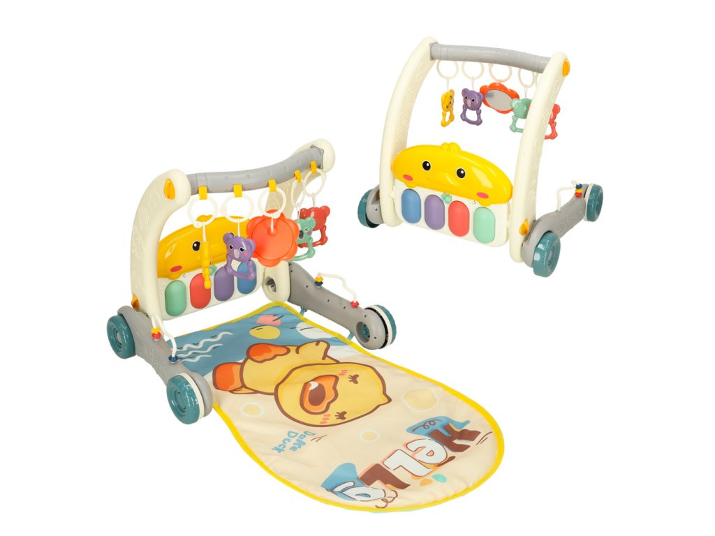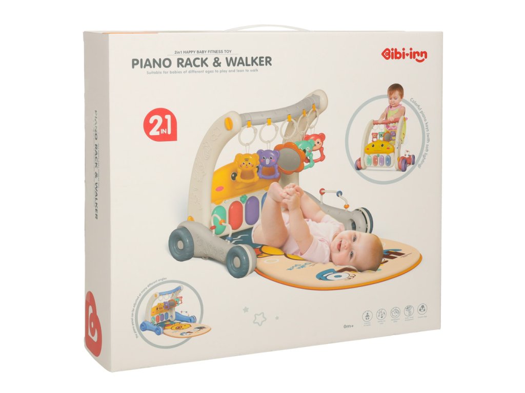 Sada 2 v 1 – chodítko a vzdělávací podložka je hračkou pro děti od prvních dnů života, která podporuje jejich motorický a senzorický vývoj. Podložka s barevným potiskem a pěti přívěsky poskytuje batolatům pohodlné místo pro hraní, zatímco interaktivní klavír se dvěma režimy a ovládáním hlasitosti stimuluje senzorický vývoj. Když dítě začne dělat první krůčky, hračku lze použít jako chodítko, které usnadňuje učení chůze a pomáhá udržovat rovnováhu díky robustním kolečkům. Je to praktické řešení, které roste s dítětem.