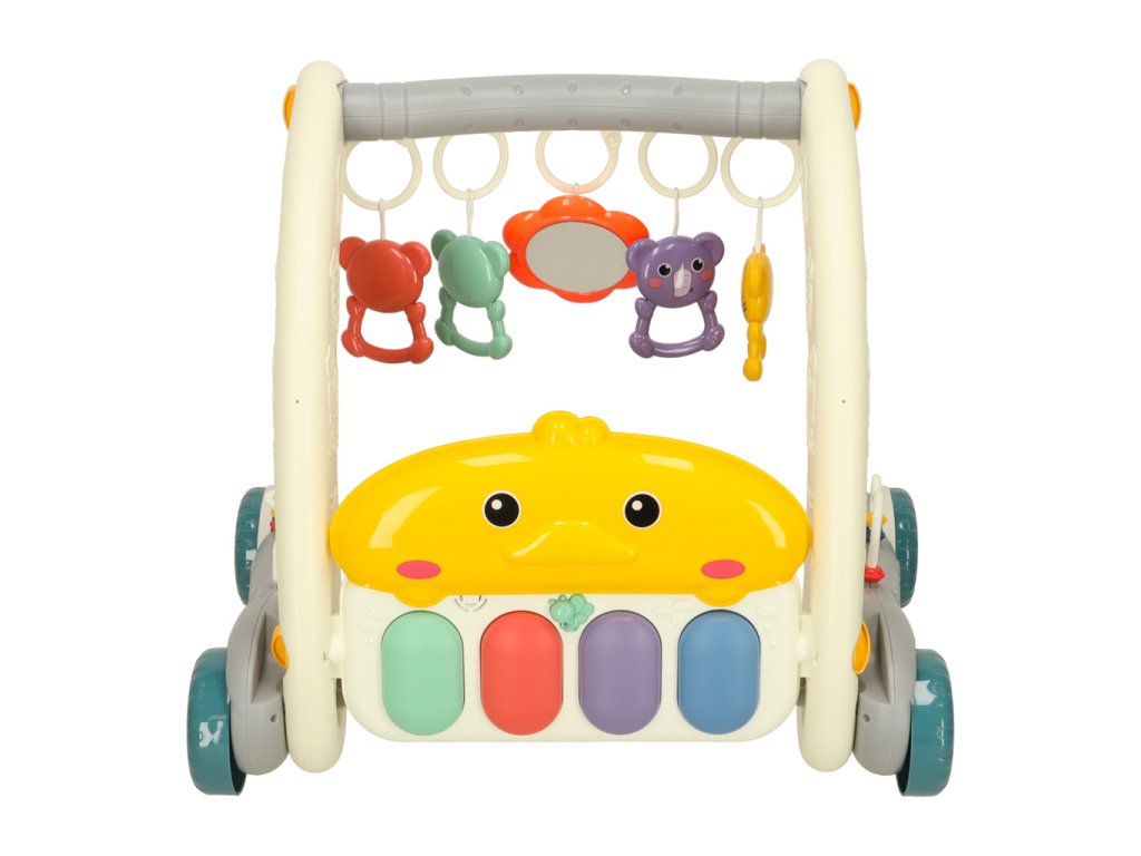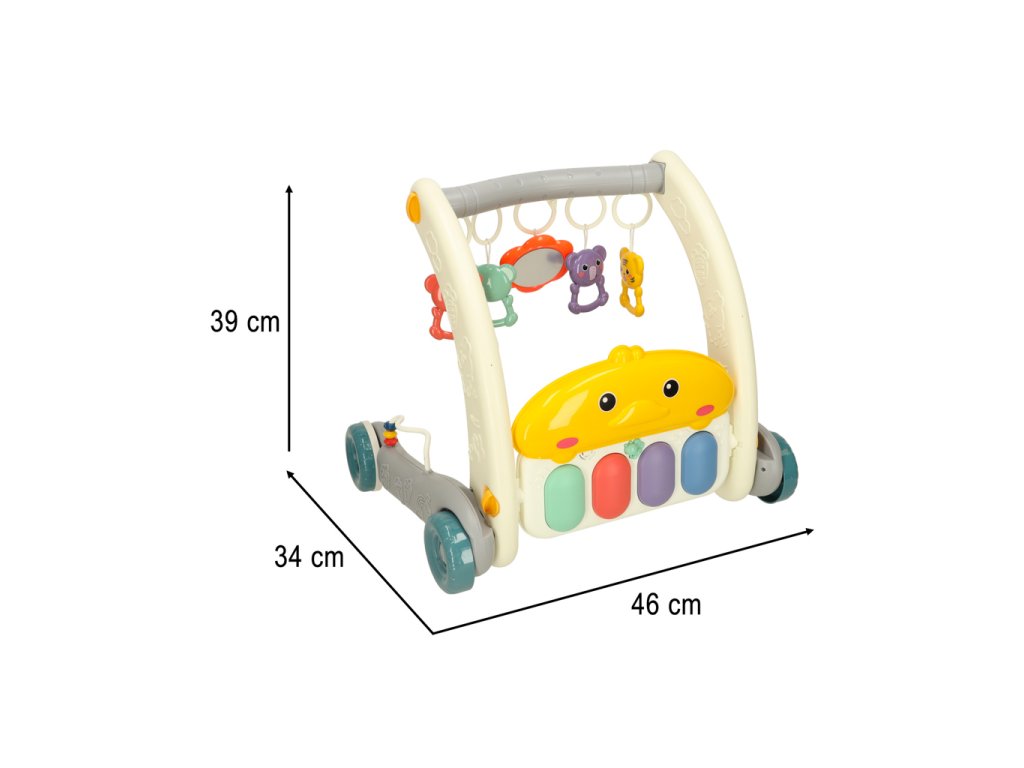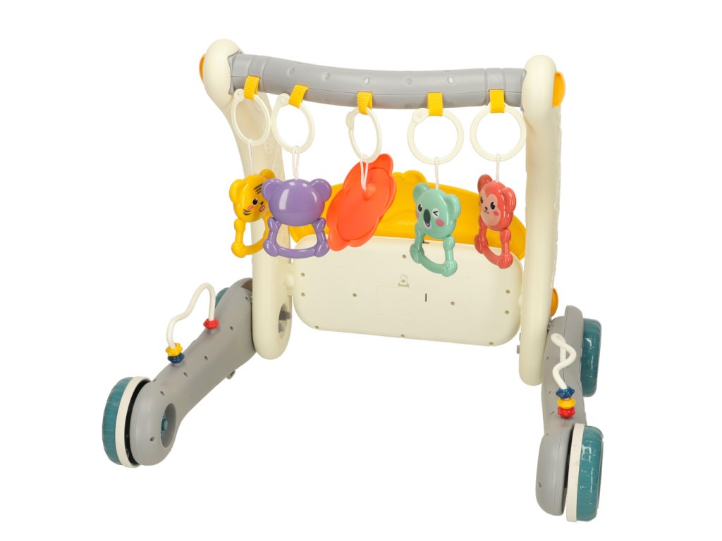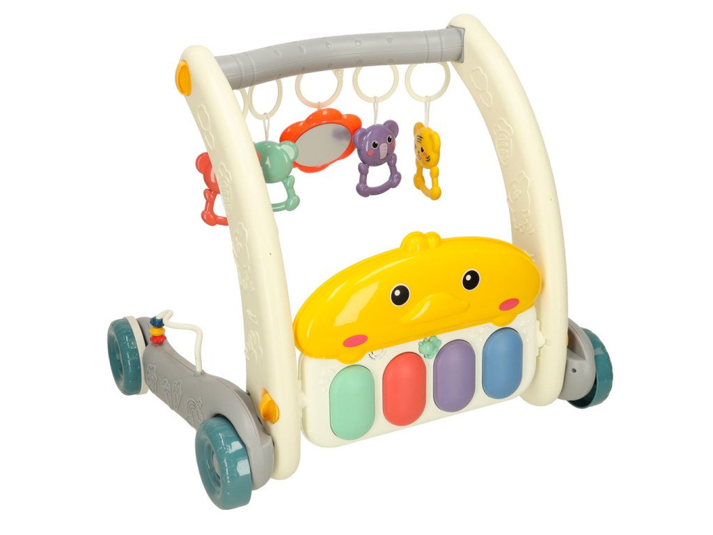 Sada 2 v 1 – chodítko a vzdělávací podložka je hračkou pro děti od prvních dnů života, která podporuje jejich motorický a senzorický vývoj. Podložka s barevným potiskem a pěti přívěsky poskytuje batolatům pohodlné místo pro hraní, zatímco interaktivní klavír se dvěma režimy a ovládáním hlasitosti stimuluje senzorický vývoj. Když dítě začne dělat první krůčky, hračku lze použít jako chodítko, které usnadňuje učení chůze a pomáhá udržovat rovnováhu díky robustním kolečkům. Je to praktické řešení, které roste s dítětem.