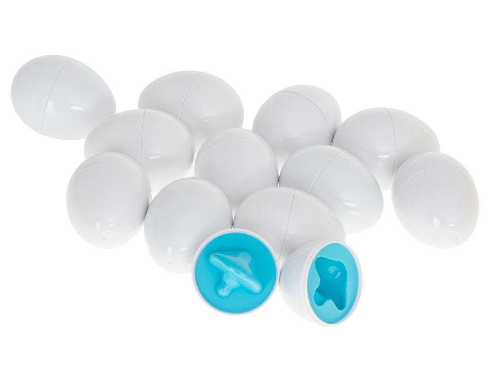 Sada obsahuje 12 vajíček, která se pod skořápkou ukrývají v různých tvarech a barvách.