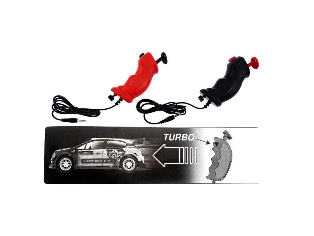 Kvalitní ergonomický ovladač okamžitě padne do ruky. Každý ovladač je vybaven proporcionální tlačítkem na ovládání plynu a tlačítkem TURBO, které krátkodobě zvýší rychlost příslušného autíčka. Jednoduché připojení ovladače pomocí konektoru Jack.